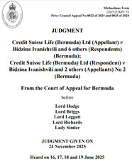 The Judicial Committee of the Privy Council of the United Kingdom, also known as the London-based Supreme Court, has issued its final judgment in the case involving Bidzina Ivanishvili and Credit Suisse Life (Bermuda) Ltd.