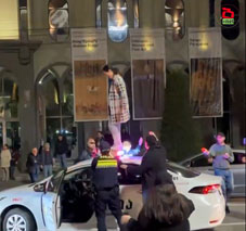 The incident occurred near the Parliament building, where protesters have gathered nightly for more than 330 consecutive days as part of ongoing pro-EU and anti-government rallies. The October 22 protest was held in solidarity with journalists after jailed reporter Mzia Amaghlobeli received the Sakharov Prize and following the arrests of three opposition Formula TV journalists accused of blocking the road.
