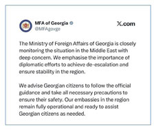 Georgia Expresses Deep Concern Over Middle East Strikes